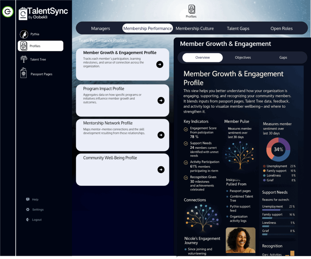 Keep members connected. Recommend opportunities that match their goals and skills.